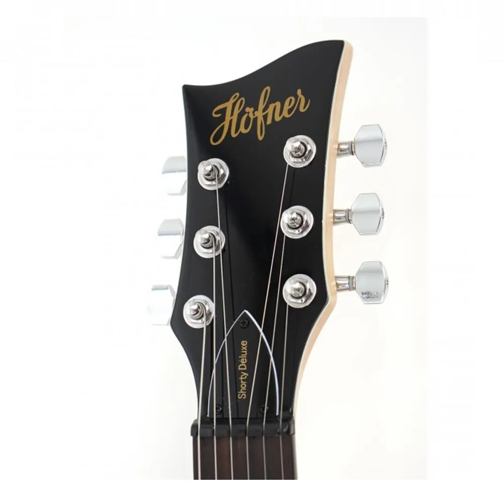 The Hofner Shorty was first produced back in the 1980s and Hofner continue to offer this compact travel guitar for those guitarists who can't bear to be without a guitar even when on holiday! The Hofner Shorty offers full scale length combined with such small overall dimensions that it can be taken anywhere. It fits easily into the overhead locker on most aircraft for example. The compact size also makes it perfect for lounging on your couch and noodling on the Shorty!