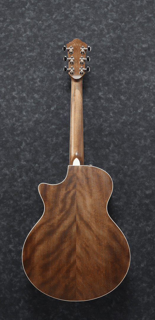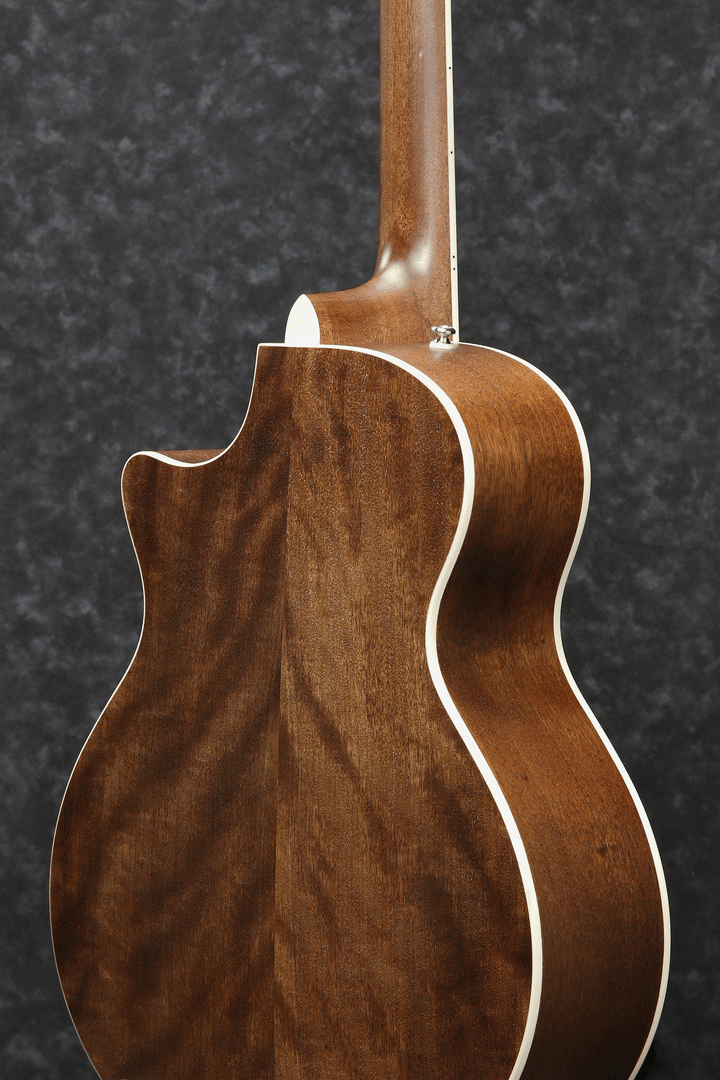 The Okoume back and sides generate a woody, warm tone when the guitar is played softly or finger-picked and provide punchy high-mids with a clear projection when strummed.