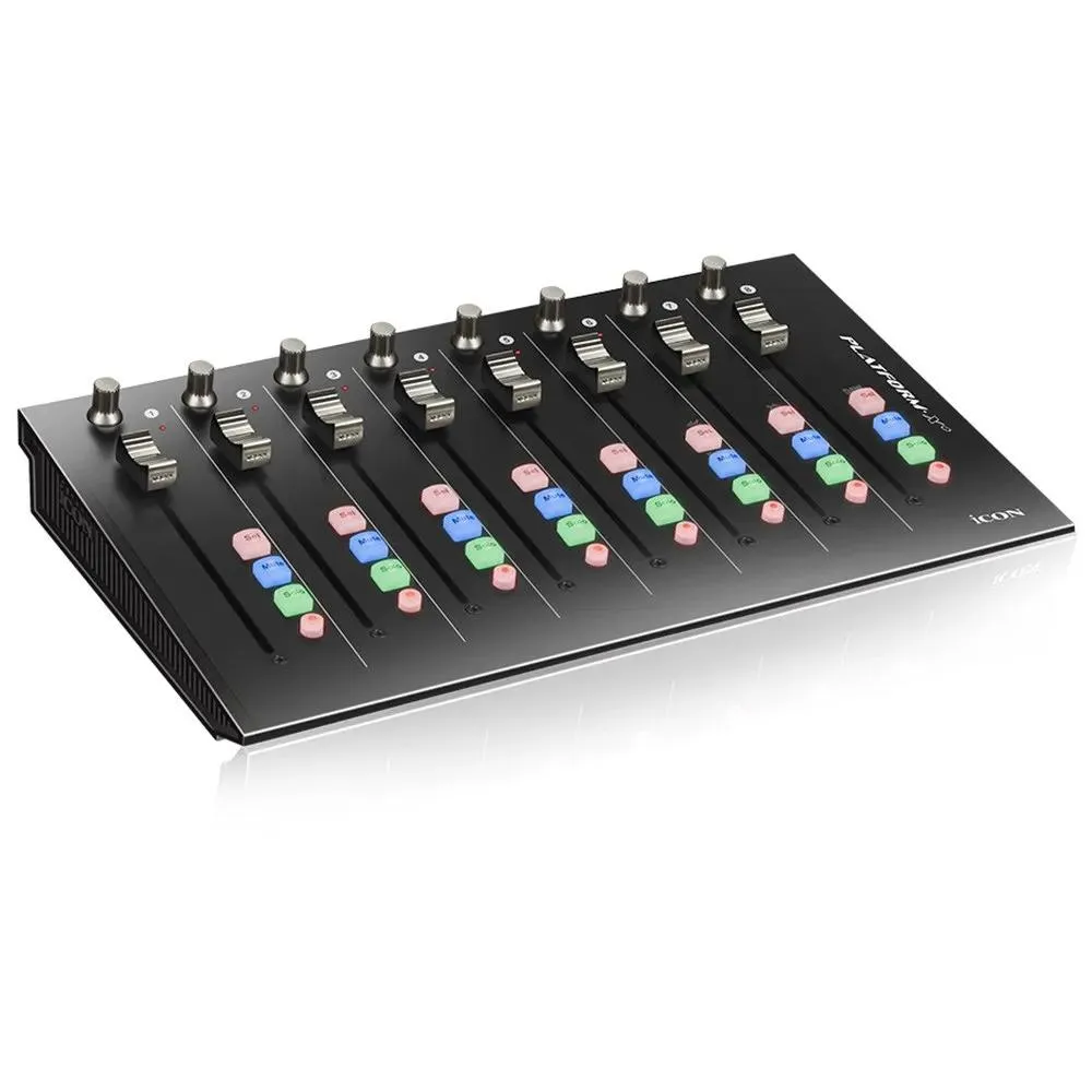 Expand your Platform M+ modular DAW control system by up to 32 channels using up to three Platform X+ units from iCON Pro Audio. Each Platform X+ houses eight touch-sensitive motorized channel faders with 10-bit resolution, eight dual function encoder knobs, and mute, solo, select, and record buttons. The iCON universal DAW mode on Platform X+ controls Cubase, Nuendo, Samplitude, Logic Pro, Studio One, Bitwig, Reason, Sonar, Digital Performer, Reaper, FL Studio, Adobe Audition, Ableton Live, and Pro Tools. Add the optional Platform D2 display to better view track names and parameters.