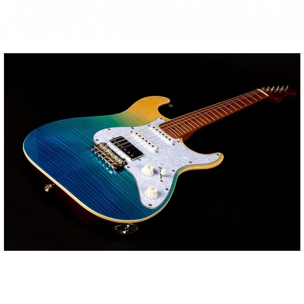 Body Shape JS (Strat-style) Top Flamed Maple Body Basswood Neck Canadian Roasted Maple Neck Shape Modern "C" Scale Length 25.5" Fingerboard (Radius) Roasted Maple (9.5") Frets 22 Nut Bone (1.65") Machine Heads Chrome Locking Pickups 2x JET Ceramic Single-Coil Strat (Neck, Middle), 1x JET Ceramic Humbucker (Bridge) Controls 1x Vol, 1x Tone, 5-Position Blade Bridge Tremolo