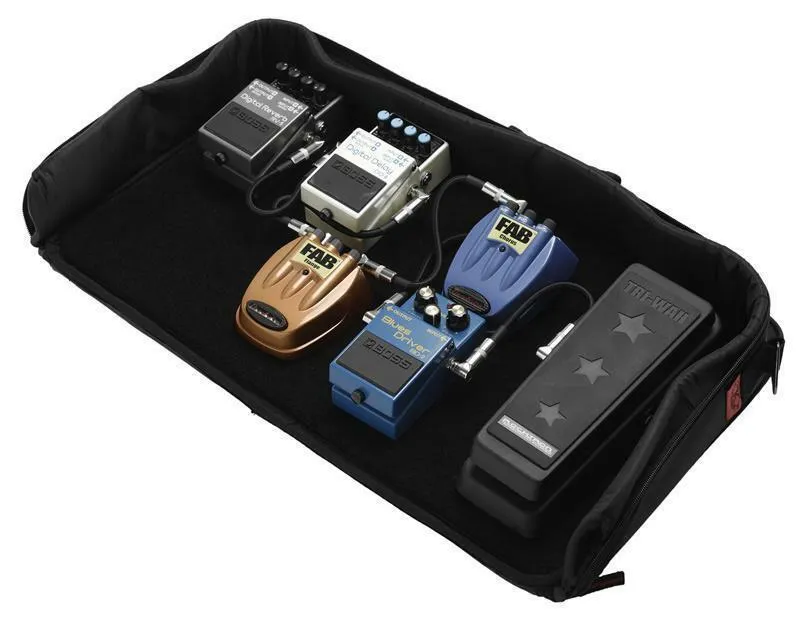 The Razor series pedal board bag features a padded main compartment, a lid that opens to convert into no-slip grip base, a stylish razor slash outer pocket, removable shoulder strap, and a heavy duty ballistic polyester exterior. The included velcro tape makes set up a breeze yet strongly holds your pedals in place, even during the tumbles of transport.