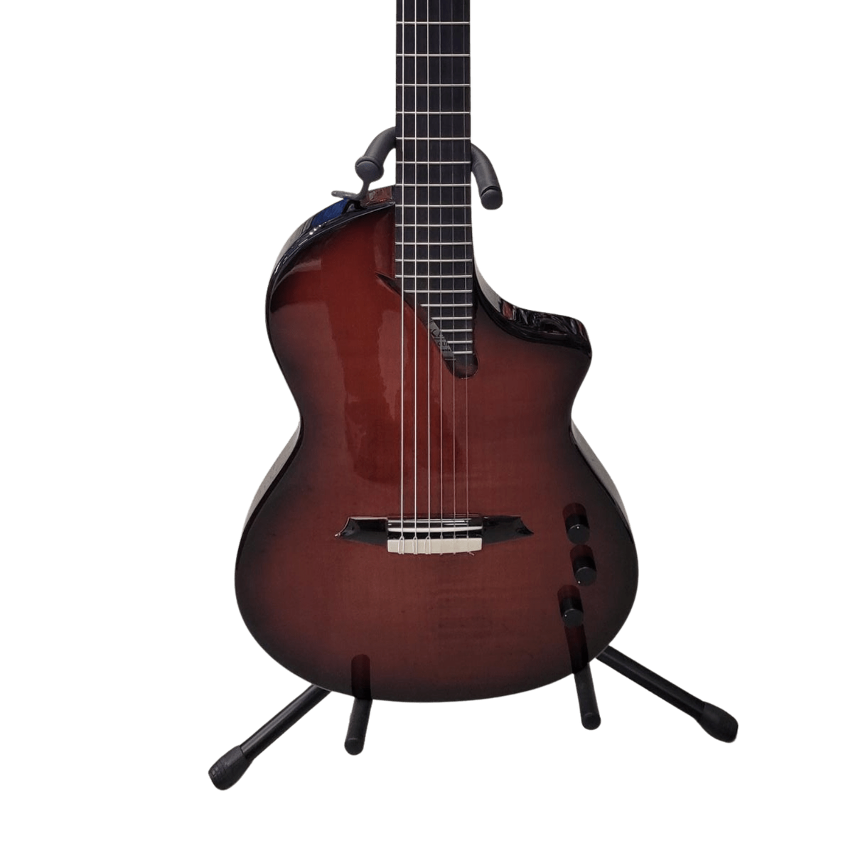 The Hispania's crossover design features a chambered solid body that blends Katoh’s expertise in acoustics with the features of solid body electrics. The guitar boasts a classical tone from an aesthetically streamlined body design typical of Katoh stage guitars. It retains the warmth and tone of classic guitars while providing the scope for broadening your tonal pallet. The Hispania’s remarkable playability and striking appearance really does make it the perfect performance instrument.