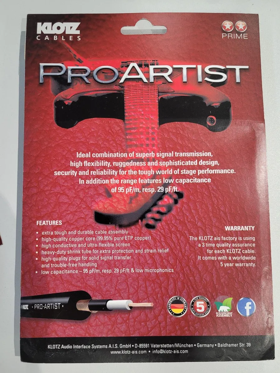PRO ARTIST instrument and guitar cables deliver convincingly broad,well-balanced sound and easy handling. Manufactured from state-of-the-art plastics, the cables are designed for maximum flexibility, with soft PVC and special plasticizers to maintain flexibility and electrical stability throughout the cable‘s long life.