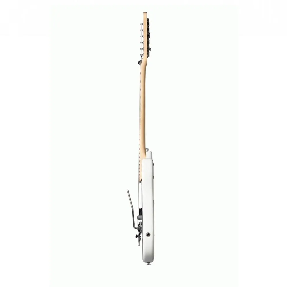 The 84 from Kramer pays homage to one of the most influential solidbody electric guitars of all time. (Hint: it was covered with red, black, and white stripes). This built-for-performance axe centers around a Pacer-esque alder body, along with a hard rock maple neck and fast-playing 12-inch-radius fingerboard. Plug into your favorite high-gain stack, and you’ll experience classic hot-rodded humbucker tones, courtesy of a Seymour Duncan JB bridge pickup. No self-respecting shred guitar would be complete without a double-locking tremolo, and The 84 includes the gold standard — a Floyd Rose — complete with an EVH D-Tuna for stress-free access to Drop D tuning. The 84 also features an easy-access truss rod, rock-solid die-cast tuners, and an eye-grabbing matching banana-style headstock.
