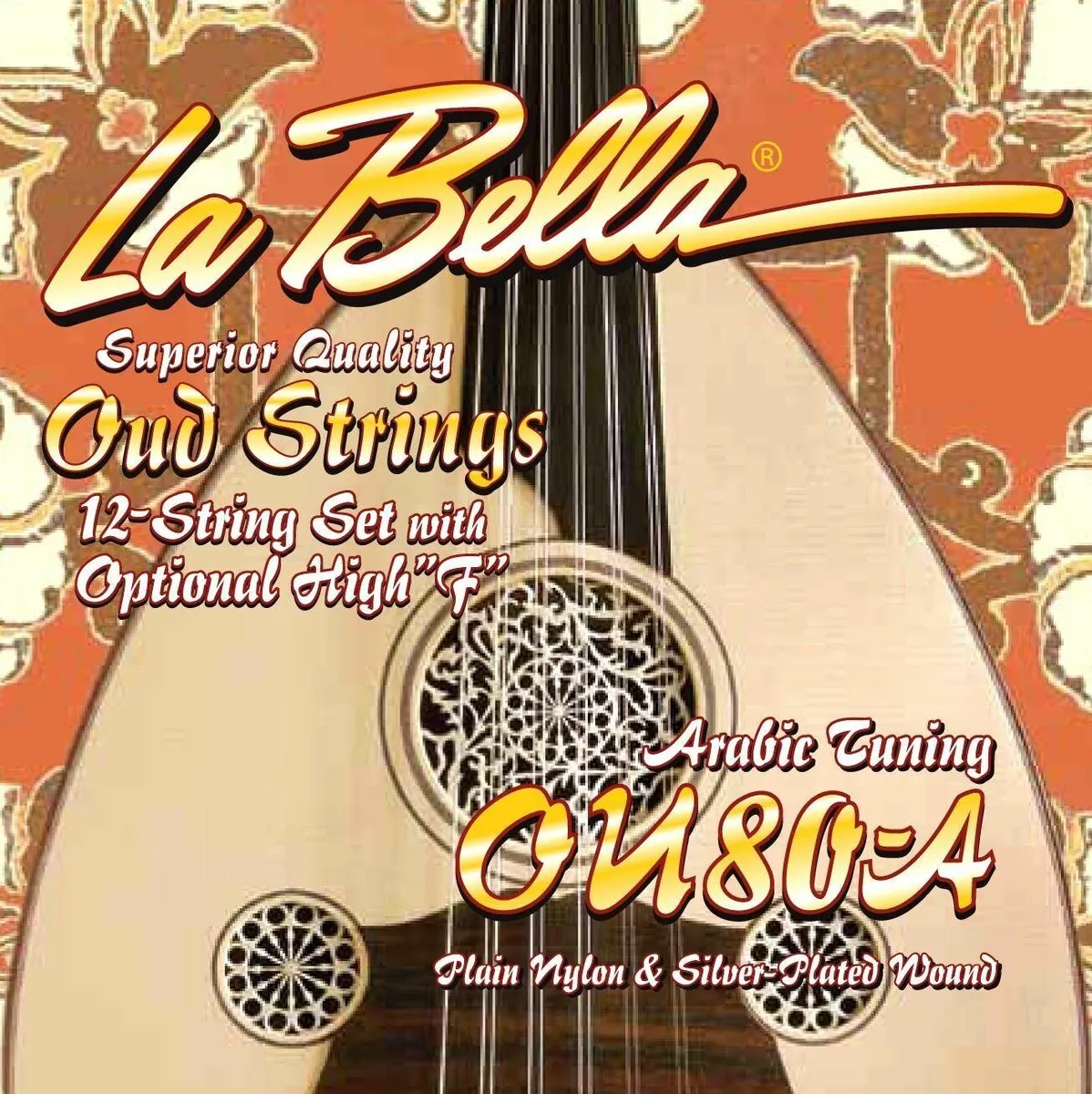The La Bella OU80A utilizes the Arabic tuning for the classicalfretless Oud with 11 strings in 6 courses. This set includes and extraoptional high F for a total of 12 strings