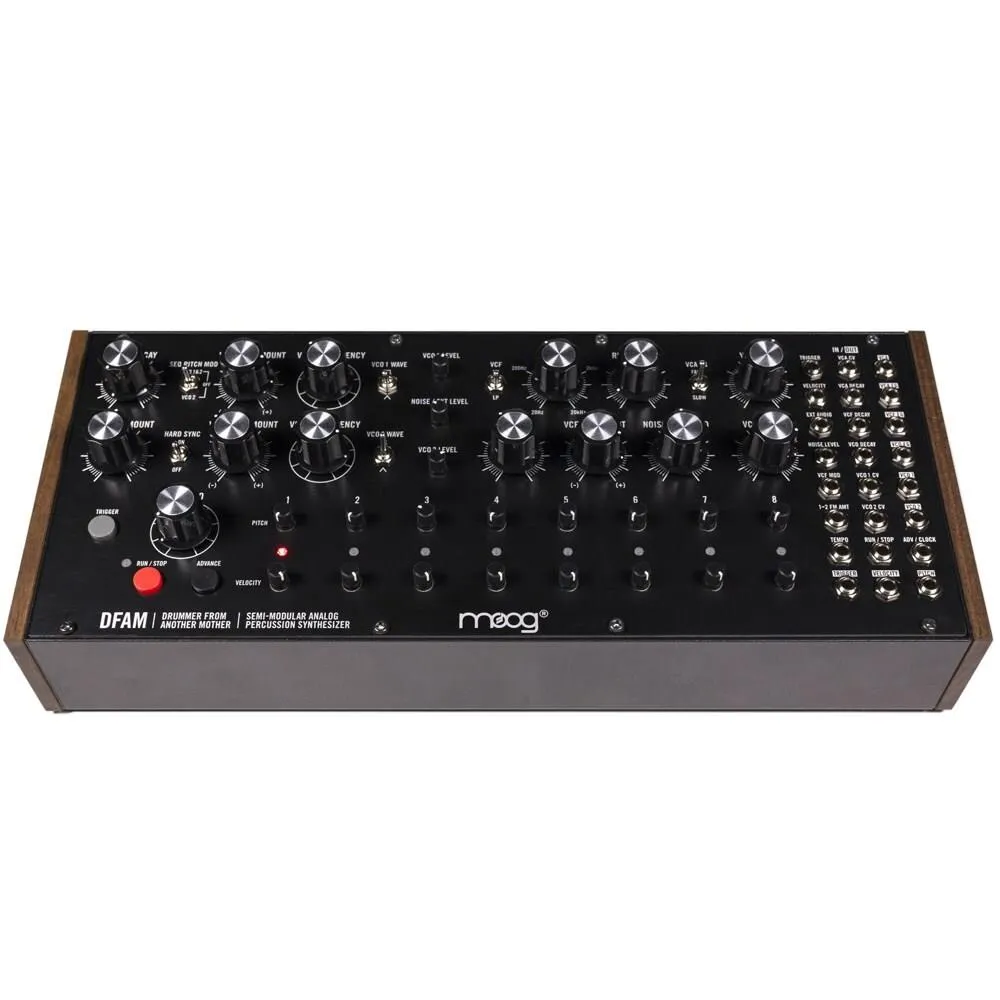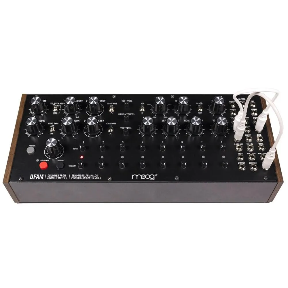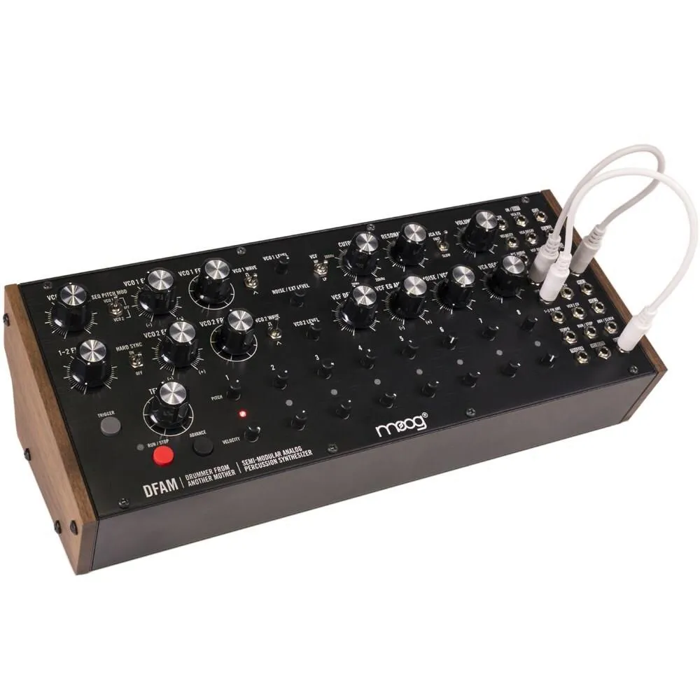 Drummer From Another Mother (DFAM) is a highly-interactive, Semi-Modular Analog Percussion Synthesizer and a vibrant deviation from the traditional drum machine. Handcrafted in Asheville, NC by the employee-owners at the Moog Factory, DFAM is the first addition to the Mother-32 family of synthesizers and presents an expressive hands-on approach to percussive pattern creation. It requires no patching, and absolutely no experience is needed for human-beings of any age to quickly begin synthesizing new and unique rhythmic compositions.