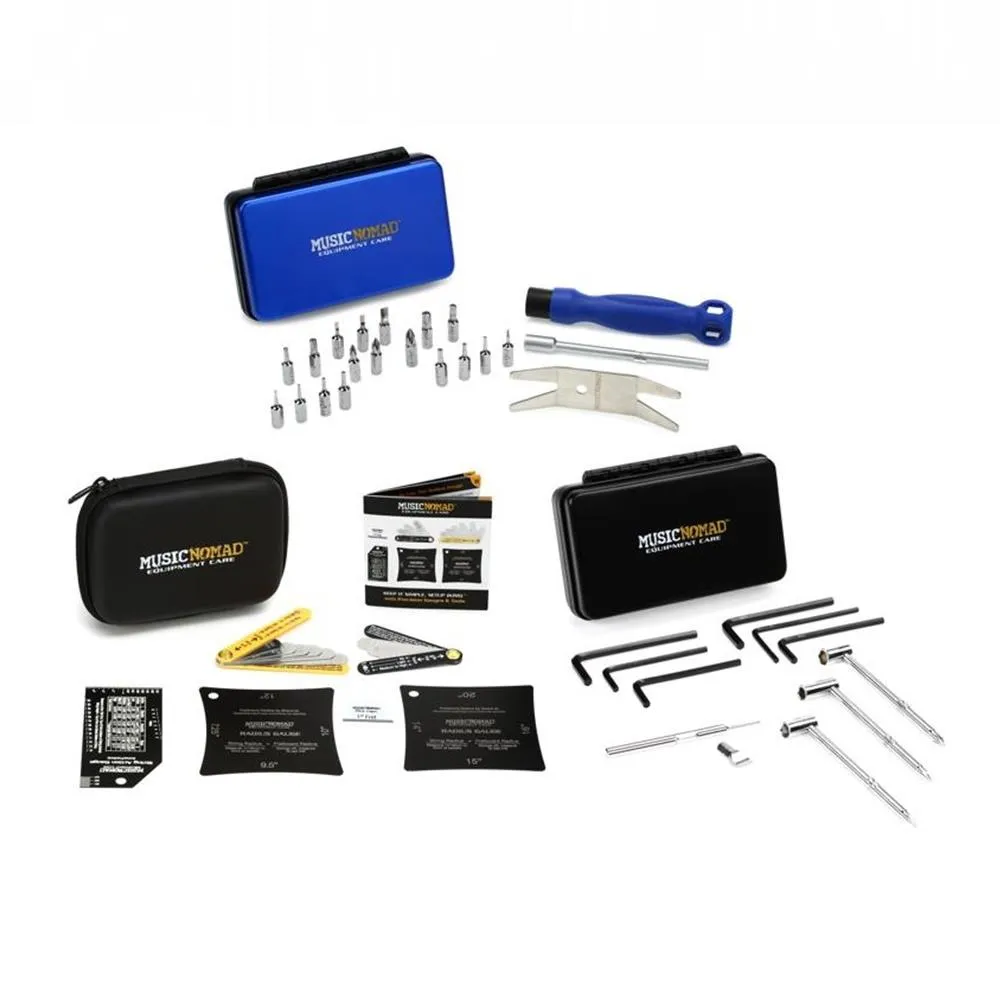 Not only is it fun, but a properly setup guitar takes your playing and sound to a whole new level. In collaboration with Master Guitar Tech Geoff Luttrell, Music Nomad has developed the KEEP IT SIMPLE, SETUP (KISS)™. We demystified the process by developing innovative, precision gauges and tools combined with step-by-step general guidelines anybody can follow and setup their guitar to play and sound great. With our KEEP IT SIMPLE, SETUP (KISS)™ method and our gauges you can check the vital areas of your guitar and use our tools to perform your own setup. The Starter Kit bundle includes gauges that work for all Electric, Acoustic, Classical and Bass Guitars. The 2 tool sets will adjust most Guitars and Basses. Not included: Nut Files or Acoustic Guitar Soundhole Truss Rod Wrenches.