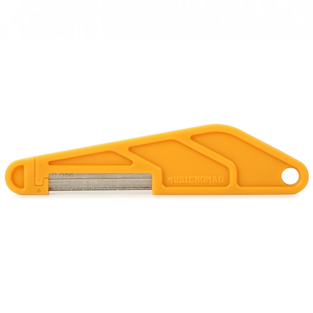 The industrial, even diamond coating cuts all nut or saddle materials such as nylon, bone, graphite & even metals such as brass & zinc. We added an ergonomic handle for total comfort & control of your cut, or you can remove the blade from the handle as an alternative cutting option. With 16 sizes to choose from starting with .010" up to .130", they work great for electric, acoustic & classical guitars & even 5 string basses. That’s Music Nomad quality - raising the bar in equipment care.