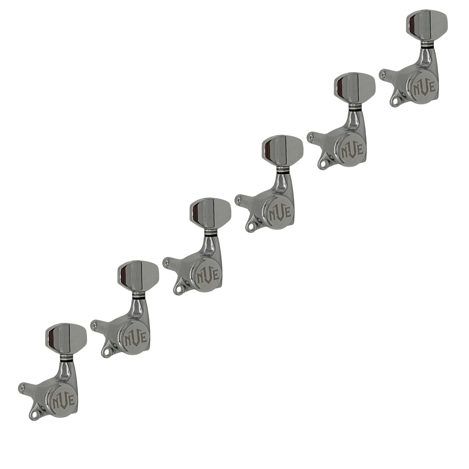 NVE Guitars Locking Tuners 6 in Line - Chrome - Left Hand - Reverse Headstock