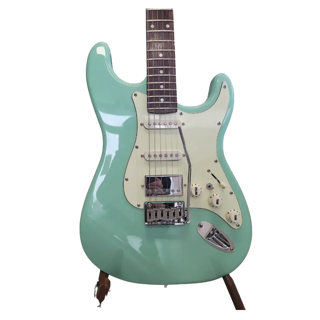 NVE the Craven NVE Guitars deliver impressive bang for buck, combining premium touches such as roasted maple necks, dependable hardware, Locking Tuners, Stainless Steel frets, and well-executed finishes at a price that stays accessible. They’re a strong choice for both new players and seasoned musicians wanting an affordable instrument that feels and looks more upmarket, often outshining other budget guitars in craftsmanship, comfort, and overall feel. Model: NVEST700 Color: Green Body: Alder Neck material: Canadian carbonized maple Neck shape: C type Fingerboard material: rosewood 22 frets Fingerboard width: 305MM Nut: NUBONE Fret specifications: Large Stainless steel Upper pickup: Alnico magnetic steel single pickup Middle pickup: Alnico magnetic steel single pickup Lower pickup: Alnico magnetic dual pickup (can be cut individually) Tuners: NVE Locking Tuners Circuit: 1×volume adjustment, 2×tone adjustment, 5-position switch, coil splitting