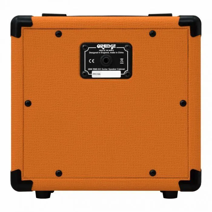 Killer Orange tone doesn't have to come from massive rigs. The range PPC108 guitar speaker cabinet clocks in at just over 10" across. Designed to be coupled with the orange MicroTerror guitar amp head, the PPC108 houses a special-design 8" speaker for punchy tone. The same rugged construction used with larger Orange cabinets was used on the PPC108. And the same cool orange Tolex, basketweave grille cloth, crest, and badge identify this cab as distinctly Orange. If you have the Orange MicroTerror head, then you need the Orange PPC108 guitar speaker cabinet. Grab one and start rocking today!