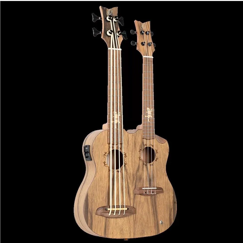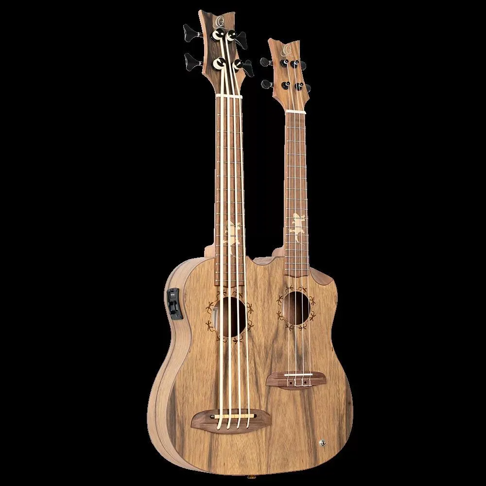 ORTEGA HYDRA Double Neck Tenor Ukulele, 4/8 Acoustic/Electric with Case