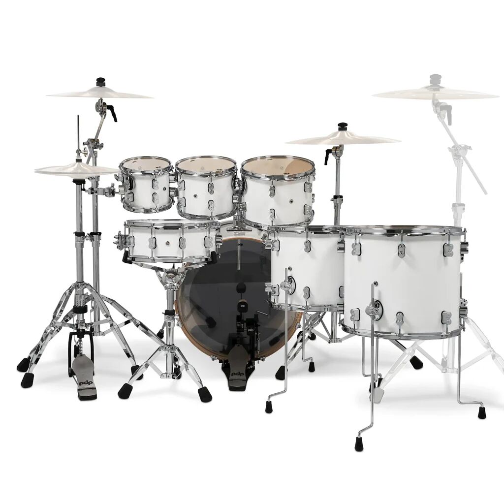 This 7-piece PDP shell pack is sized for arenas with 7x8', 8x10', and 9x12 mounted toms, 12x14' and 14x16' floor toms, 5.5x14 snare, 18x22' bass drum, and an HW815 hardware (PDSP400 Single Bass Drum Pedal, PDSS800 Snare Stand, PDHH800-01 3-Legged Hi-Hat Stand, PDCS800 Straight Cymbal Stand, PDCB800 Boom Cymbal Stand).