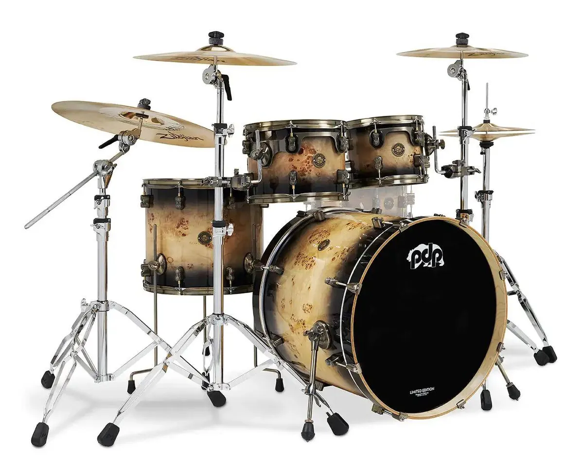 This PDP Concept Series LTD Mapa Burl 5-Piece Shell Pack features 100% European maple shells and figured mapa burl veneers to deliver an experience that’s easy on the ears and the eyes. These 7-ply shells produce the classic warm tones and resonance of maple with mid to low-end attack.