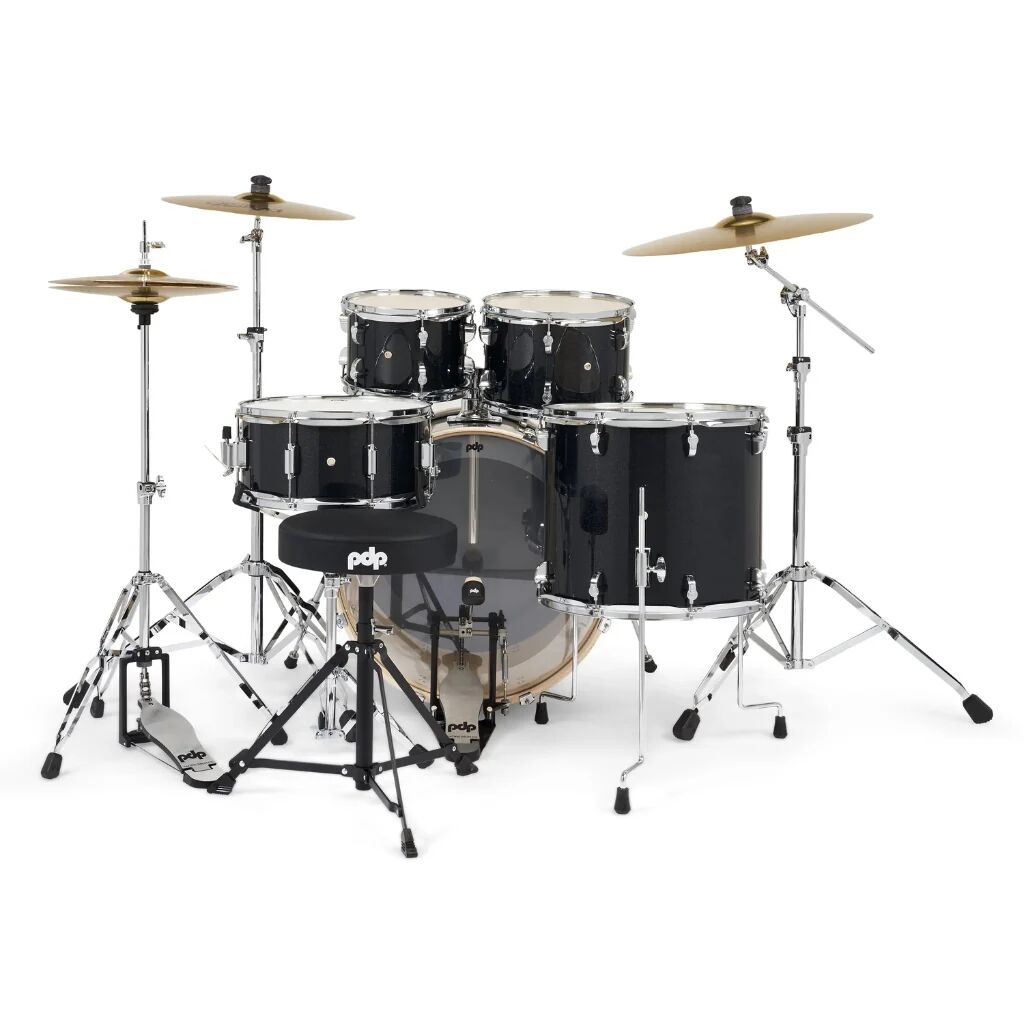 PDP Mainstage 5 Pce Drumkit Black Sparkle c/w Hardware & Paiste Cymbals