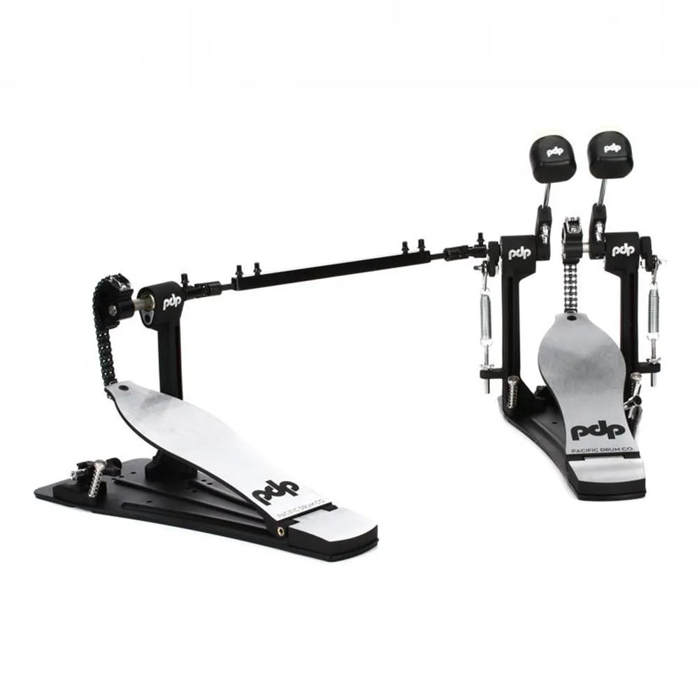The Concept Series Chain Drive Double Pedal represents the pinnacle of PDP and DW's exhaustive artist research. Feel, power, speed, response — it's all here in this precision double pedal. The PDDPCO’s twin concentric cams are driven by dual chains for an ultra-modern fluid response underfoot. Thanks to the PDDPCO’s split-shaft design, you get a totally independent response from both sides of the pedal. So, whether you're playing machine-gun doubles or downtempo fours-on-the-floor, the PDP Concept Series double pedal doesn't compromise on feel. Extended XF longboards with needle-bearing hinges and handsome brushed aluminum footboards offer up loads of dynamic range and plenty of room for slide doubles. Meanwhile, dual-post side supports really help channel power and speed from your feet directly to the PDDPCO’s 2-way reversible beaters, which not only give you two types of sounds on acoustic kick drums, but compatibility with electronic kits. Underneath, you get stabilizing solid base plates and an offset hoop clamp for fast, knuckle-saving hoop attachment and removal. There's even a DW drum key secured right to the base plates — the only tool you'll need to link, break down, and customize this pedal.
