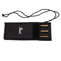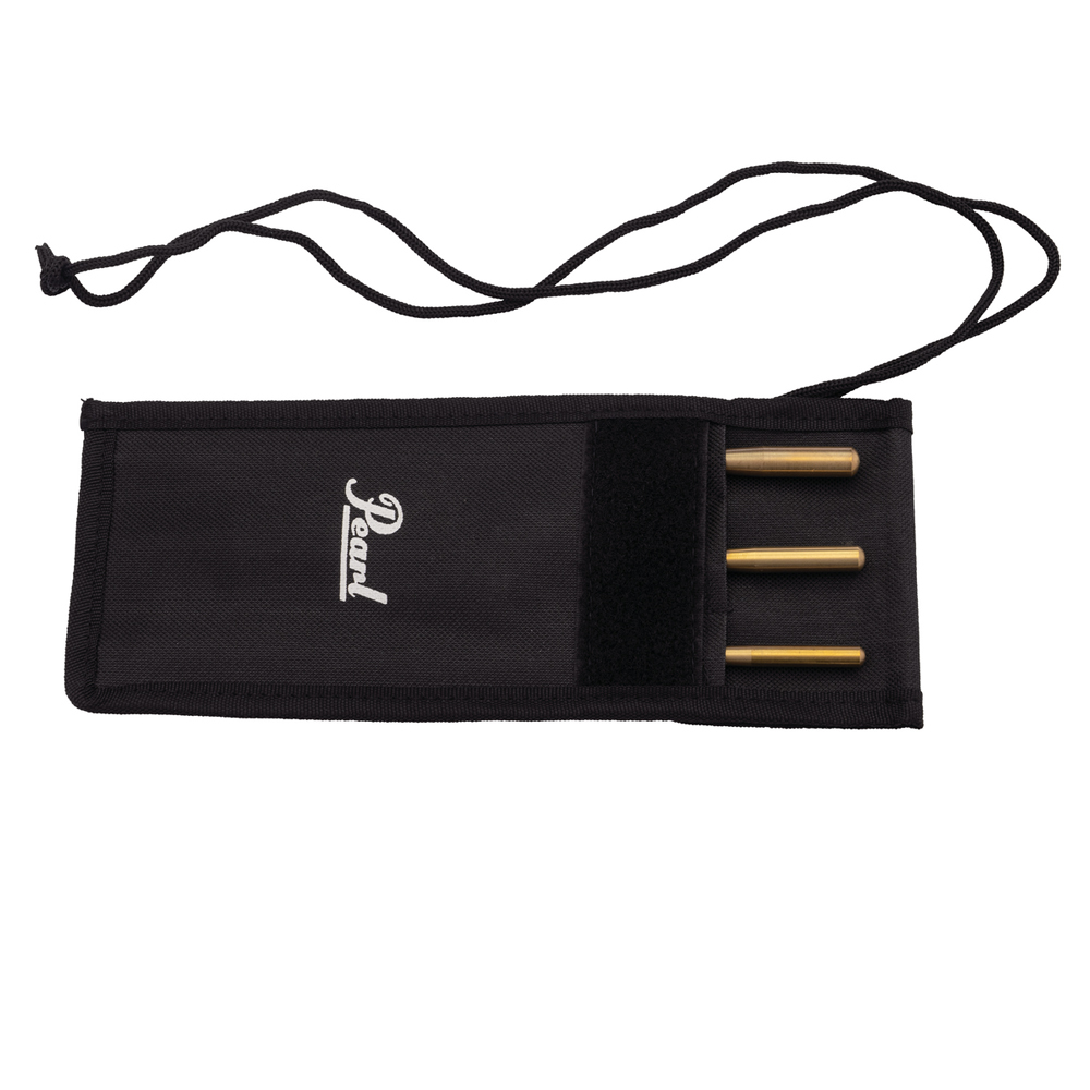 The Elite Series Triangle Beaters features three 4 mm steel strikers with three different weighted brass handles. The small handle is 6.3 mm and weighs 27 grams, the medium handle is 7.8 mm and weighs 36 grams, and the large handle is 9.3 mm and weighs 45 grams. The strikers come complete with a storage pouch that seals with a velcro strip to secure the strikers during transport.