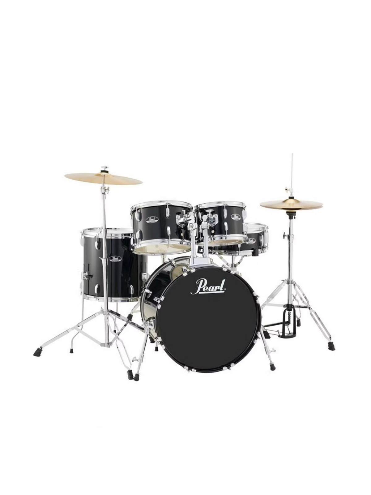 The complete package includes Pearl's 50 Series hardware comprising a hi–hat stand, cymbal stand, snare stand, bass drum pedal, and throne. Rounding out the setup are 16" brass crash–ride and 14" hybrid hi–hats, two pairs of drum sticks, a Pearl stick bag, and a Pearl drum poster. This comprehensive kit ensures new drummers have all the essential tools needed to start playing immediately without requiring additional purchases.