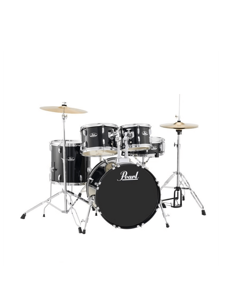 The complete package includes Pearl's 50 Series hardware comprising a hi–hat stand, cymbal stand, snare stand, bass drum pedal, and throne. Rounding out the setup are 16" brass crash–ride and 14" hybrid hi–hats, two pairs of drum sticks, a Pearl stick bag, and a Pearl drum poster. This comprehensive kit ensures new drummers have all the essential tools needed to start playing immediately without requiring additional purchases.