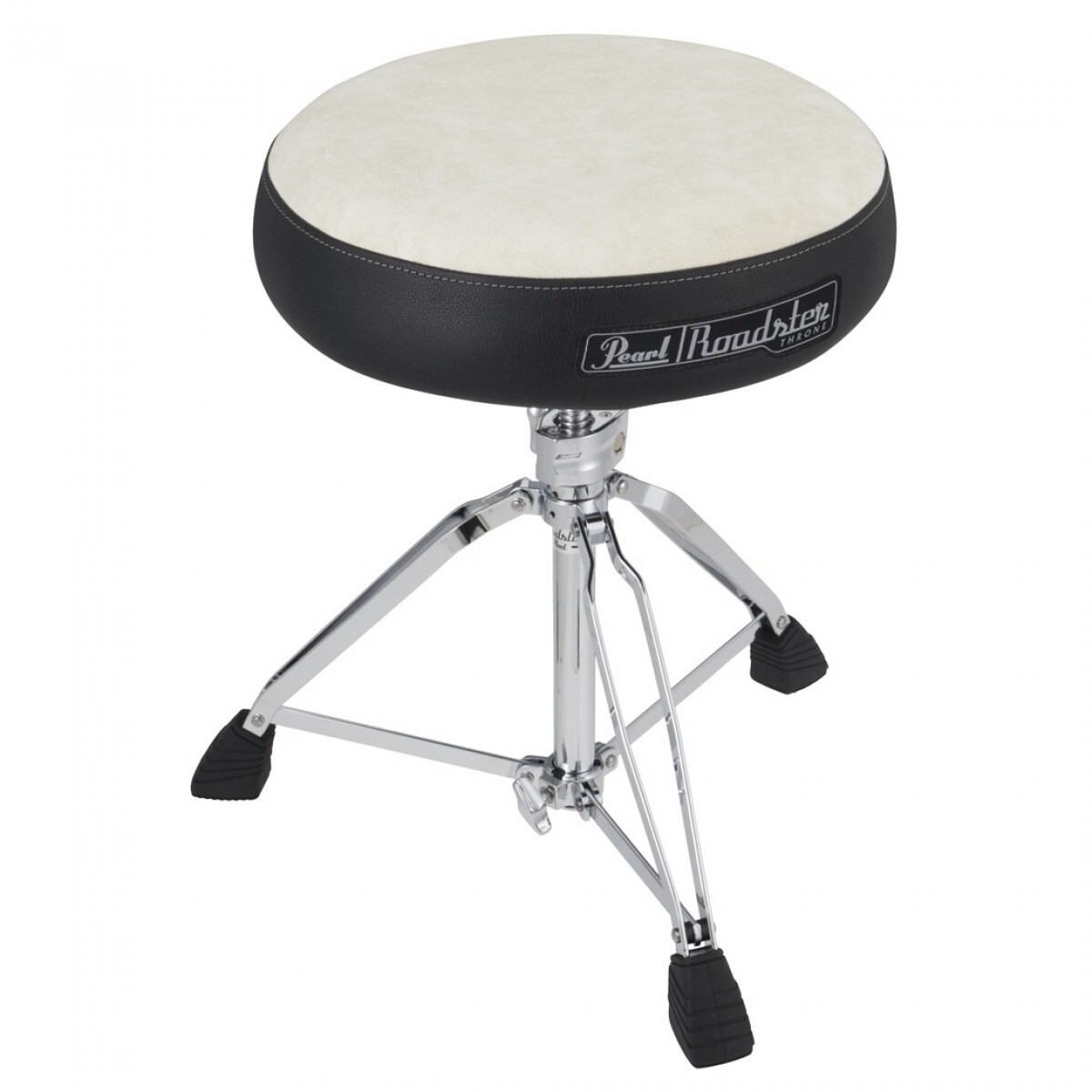 Built for the road. The result of years of research and development. The Pearl Roadster D-1500 remains the ultimate choice for working drummers and is currently available with a with an attractive white cloth top. Its carefully crafted, ergonomic design offers incredible comfort and support. This is due to the seat’s multi-core construction – multiple layers of varied density foam that wrap around the cushion’s surface. Easing joint pressure during long playing sessions. The structural support is just as impressive, too. The D-1500’s double-braced legs and large rubber feet offer robust stability in any setting. A locking manual spindle makes it easy to dial in and recall your height settings for faster set-ups. Additional Roadster features we love include the Stop-Lock rotation feature, which lets you swivel or stay put depending on your preference. On top of this, the Roadster D1500 accepts the optional DTBR1535 fully adjustable backrest (not included), which suits this throne to just about any player preference and setting on earth. This is a drum throne investment that’ll see you through years of drumming. Join the Roadster revolution.