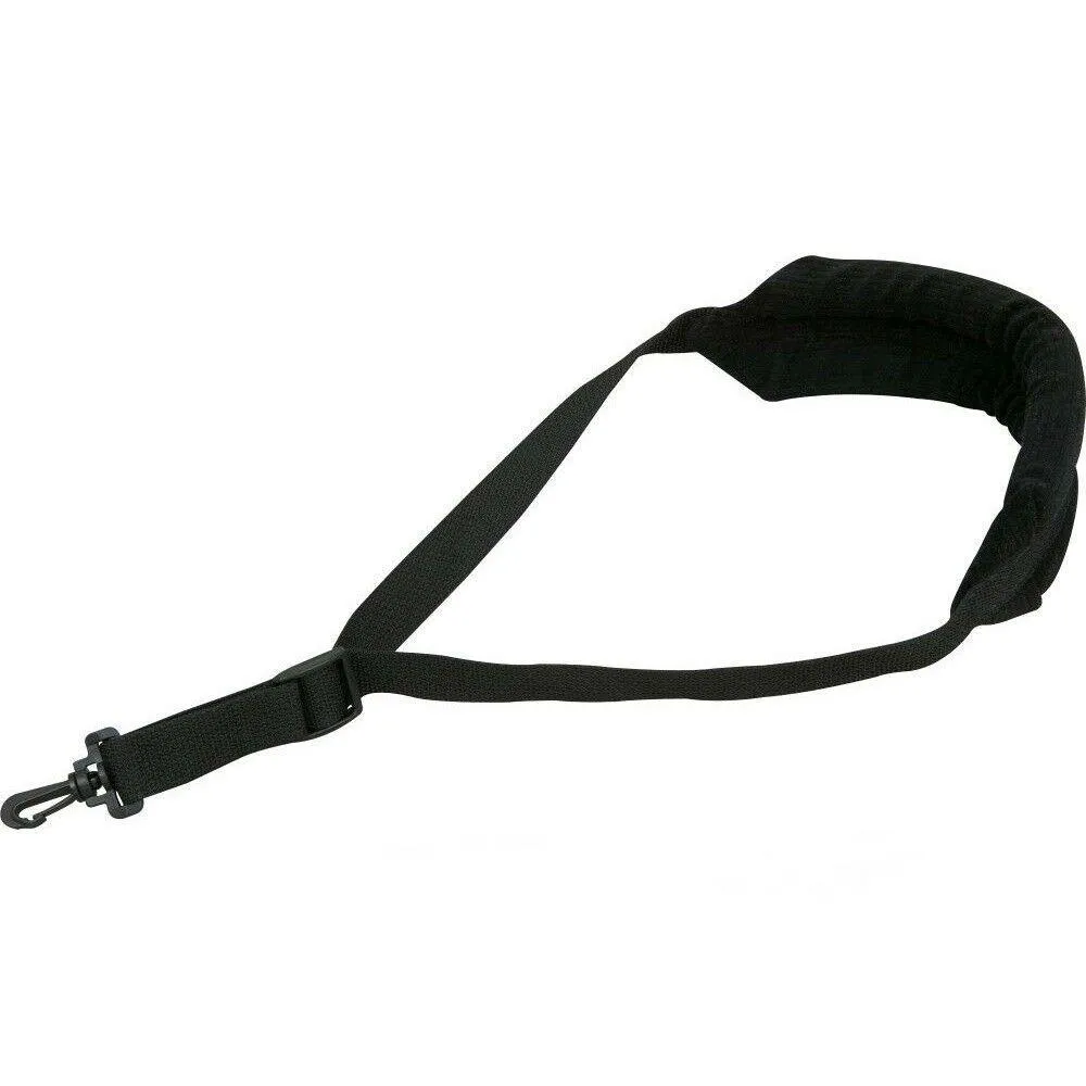 This sax strap is 1" wide to stay out of your way, but the plush pad