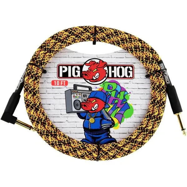 Pig Hog Instrument Cable 10ft. Right Angle / Straight Orange Graffiti