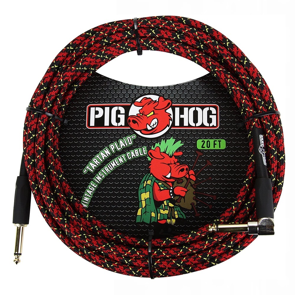 Pig Hog Tartan Plaid Instrument Cable, 20ft. Right Angle / Straight