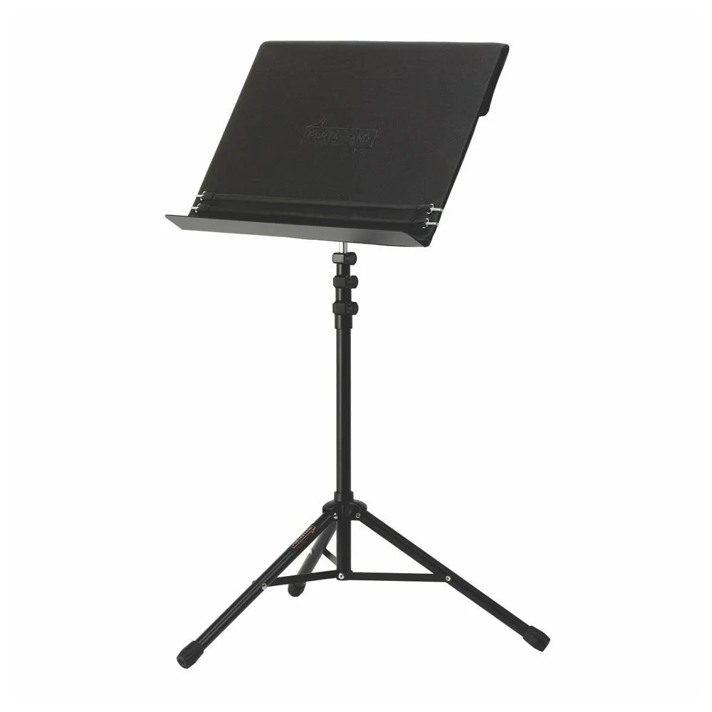 Troubadour 2.0, A Black powder-coated aluminum desk supports orchestral scores, laptops, tablets, and auxiliary equipment.