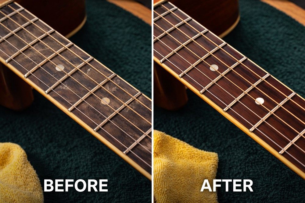 Professional restringing includes complete fretboard cleaning while strings are removed, accessing areas normally covered by strings allowing thorough grime removal and wood conditioning. This cleaning alone justifies professional service maintaining guitar condition and appearance impossible during normal playing when strings prevent fretboard access.
