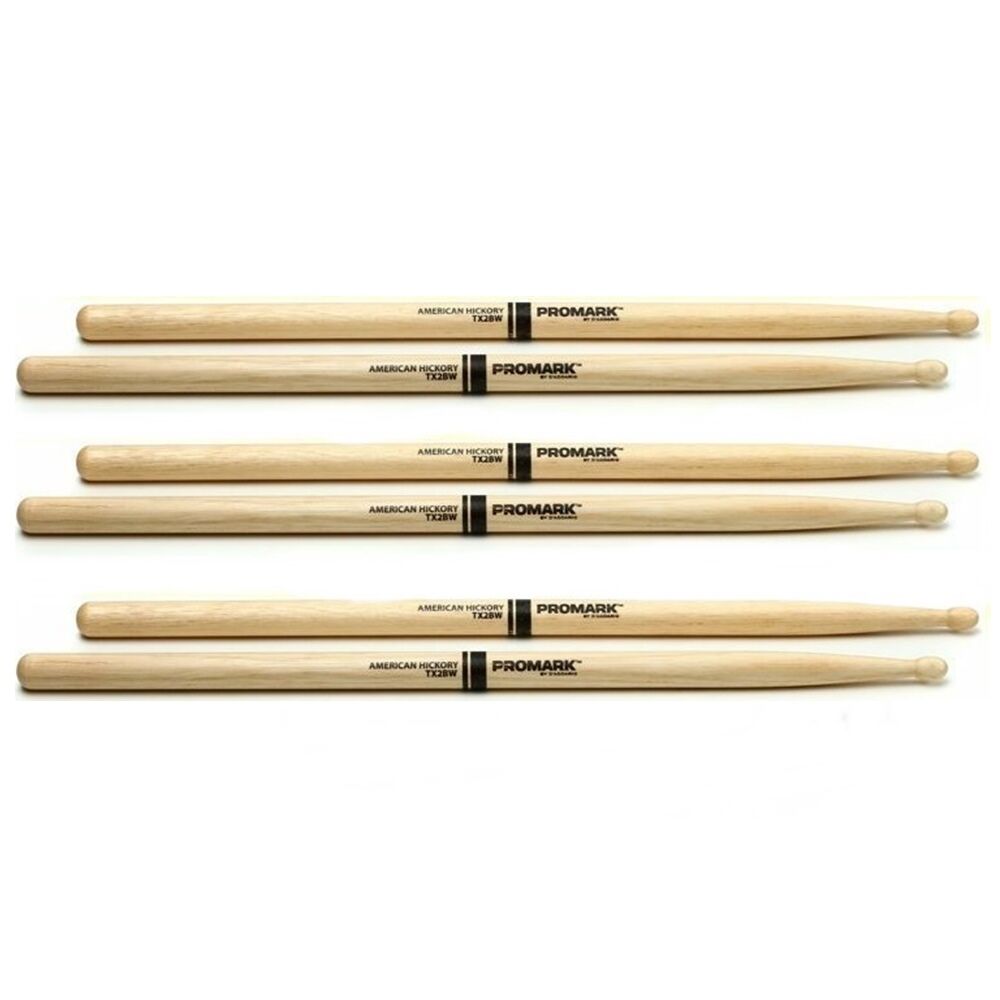Promark TX2BW American Hickory Wood Tip 2B Pro Mark 3 Pairs Drum Sticks