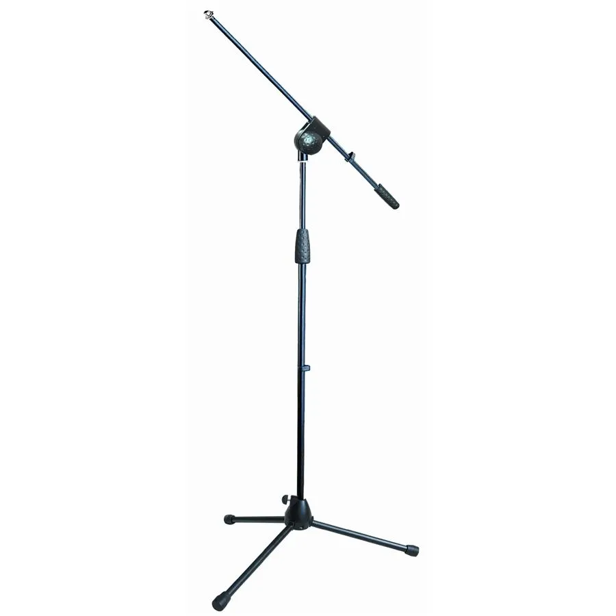 Mic stand featuring castalloy tripod base and fixed length mic boom with metal boom swivel.