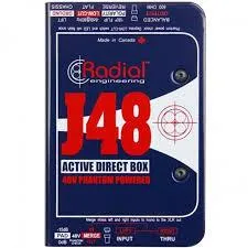 The Radial J48 is an active direct box that has been specifically designed to work around the limited current that is available with 48-Volt phantom power, and do so while delivering the pure and natural sound of the instrument. A unique switch-mode supply steps up the internal rails to allow an input signal of up to 10V without any noticeable distortion.