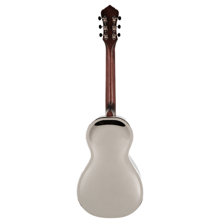 Thanks to the smaller body size and 24-¼” scale length, the Parlor Resonator has a slightly different voice than other metal body instruments. It has all the swampiness and mid range of a classic biscuit-style metal body, but the unique design adds a little more treble shimmer, giving it extra top-end clarity.
