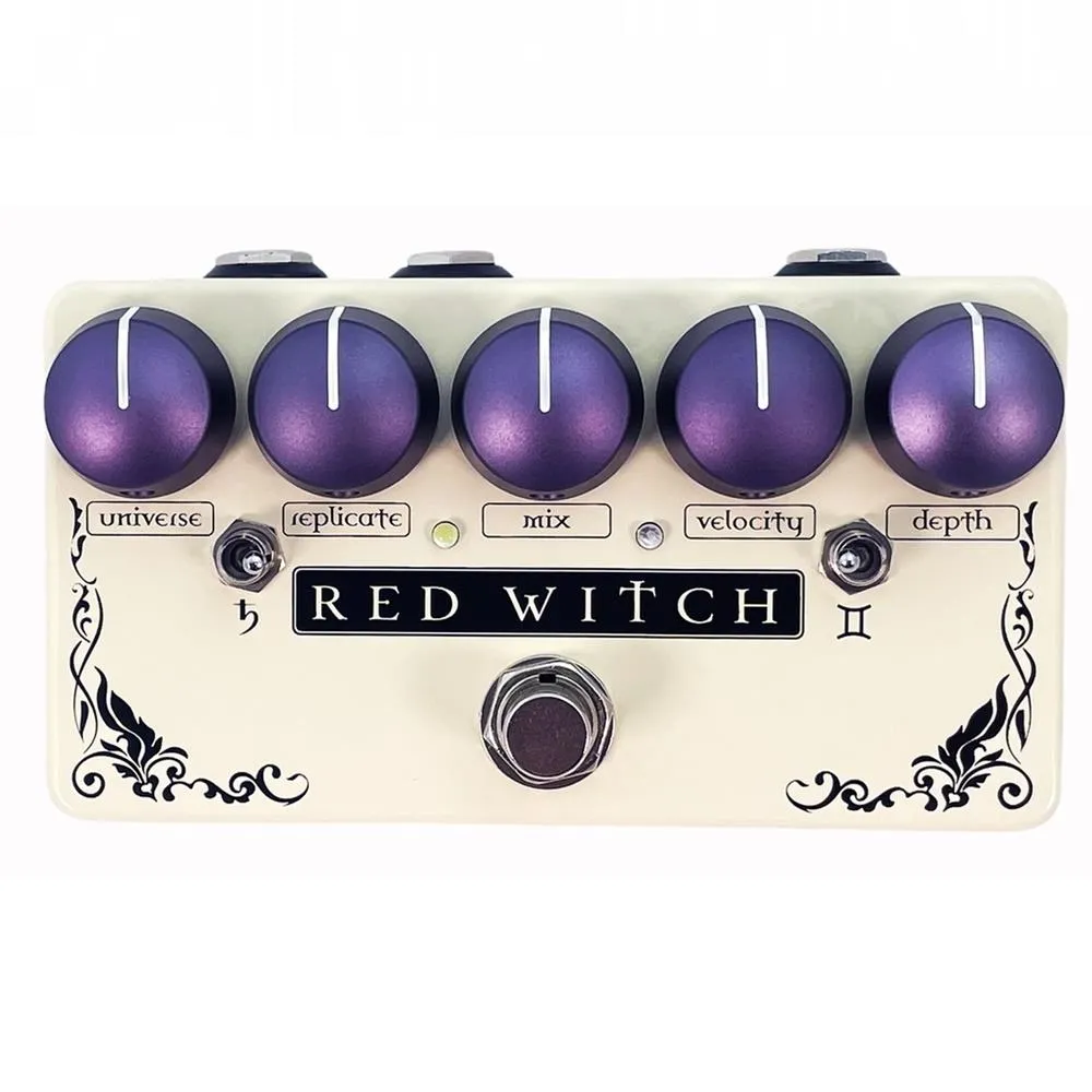 The Red Witch Binary Star delay pedal combines vibrant analog-style delay sounds with out-of-this-world modulation capabilities. You can dial in everything from short slapback delays to long haunting echoes, then apply pitch-shifting modulation for chorus and vibrato effects. For sonic flexibility, two toggle switches give you control over the delay time range and the frequency response of the delay signal. And with dual outputs for your dry and wet signals, guitarists here have found that the Red Witch Binary Star delay pedal is ready for sonically adventurous dual-amplifier rigs.