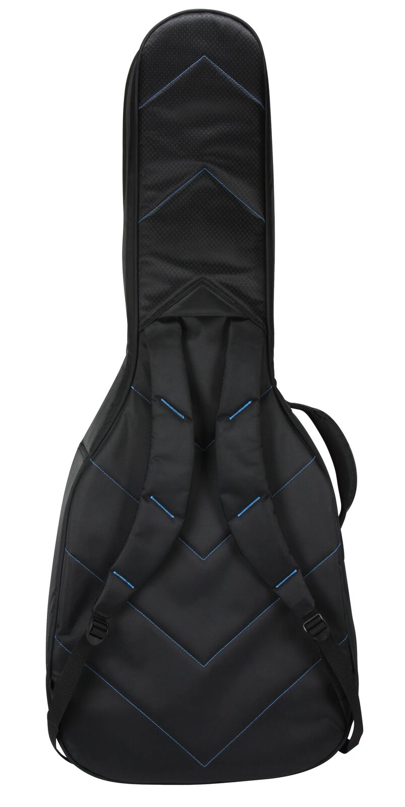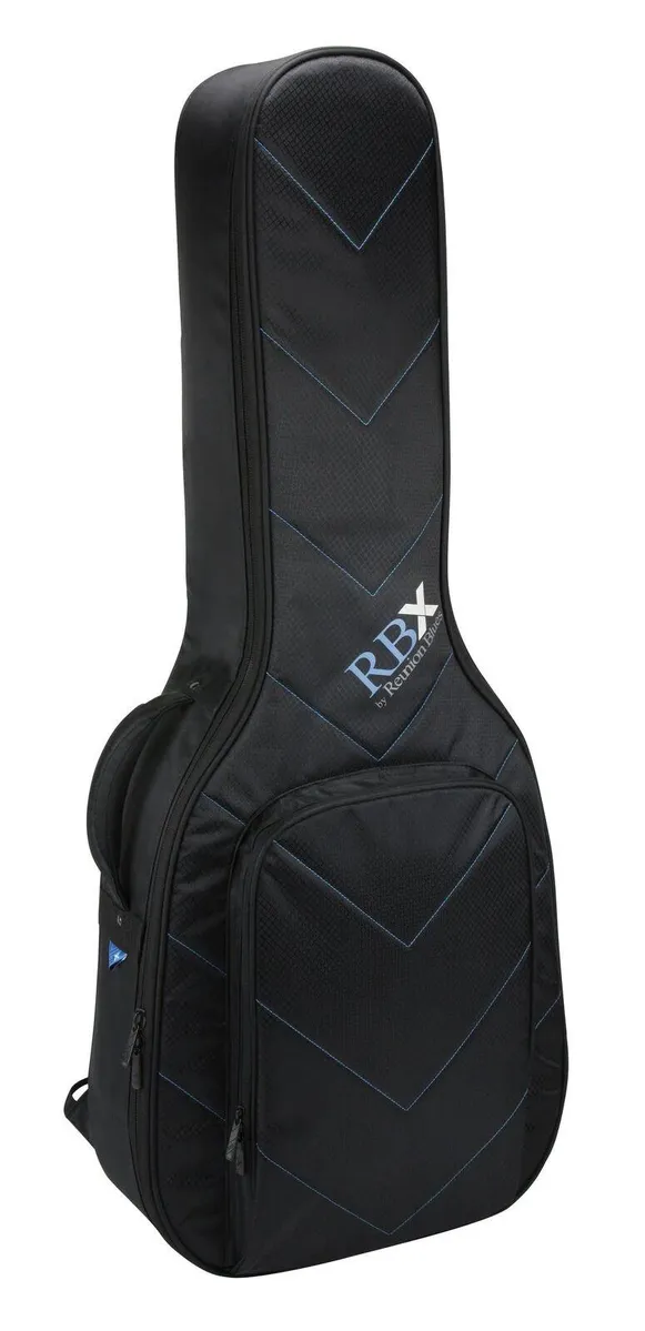 Reunion Blues has been making the world's best gig bags for almost 40 years, and the RBX gig bag line represents a fusion of our passion for quality and the desire to make an affordable, lightweight, and protective gig bag perfect for musicians on the go. The essence of this passion is represented in it's sleek aesthetic design, from the Quilted Chevron exterior to the padded Blue Luster lining. The RBX protection system features a lightweight multi-layer foam surround with strategically placed impact panels, and a dense foam neck cradle and endpin rest that keep the guitar safe and secure. Padded backpack straps, an integrated subway grip, and Reunion Blues signature Zero G handle make getting around town a breeze. A large but low profile pocket includes a cable loop and organizer and provides ample storage without adding bulk. And best of all, the RBX gig bag features Reunion Blues Limited Lifetime Warranty. The Gig Bag, Reinvented.(tm)