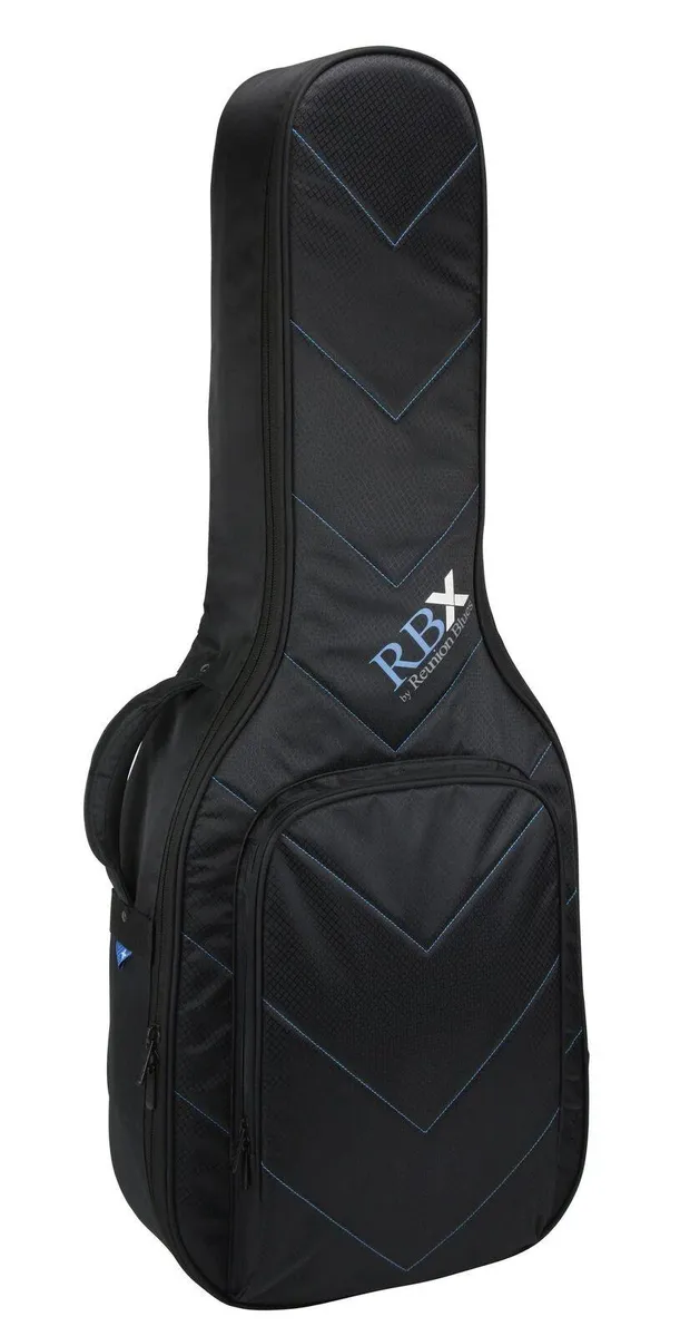 Reunion Blues has been making the world's best gig bags for almost 40 years, and the RBX gig bag line represents a fusion of our passion for quality and the desire to make an affordable, lightweight, and protective gig bag perfect for musicians on the go. The essence of this passion is represented in it's sleek aesthetic design, from the Quilted Chevron exterior to the padded Blue Luster lining. The RBX protection system features a lightweight multi-layer foam surround with strategically placed impact panels, and a dense foam neck cradle and endpin rest that keep the guitar safe and secure. Padded backpack straps, an integrated subway grip, and Reunion Blues signature Zero G handle make getting around town a breeze. A large but low profile pocket includes a cable loop and organizer and provides ample storage without adding bulk. And best of all, the RBX gig bag features Reunion Blues Limited Lifetime Warranty. The Gig Bag, Reinvented.(tm)