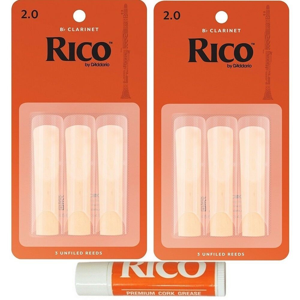 Rico Bb Clarinet Student Pack 6 x Strength 2.0 reeds + Cork Grease