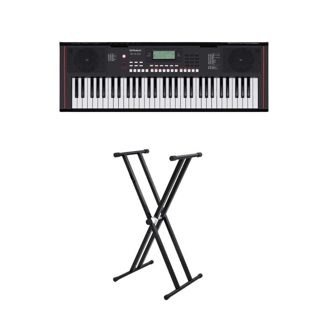 For over 50 years, Roland has been a trusted leader in electronic instruments for professional musicians around the world. With its attractive design, expressive sounds, and versatile features inspired by Roland's premium keyboards and synthesizers, the E-X10 brings you a solid foundation for growing creative skills and making music a part of your daily life. The E-X10 features acoustic piano sounds with superior sound quality and expression descended from award-winning home and stage pianos. The 61-note keyboard features piano-style keys with a comfortable, responsive feel, allowing you to establish proper techniques that translate smoothly to other keyboard instruments.