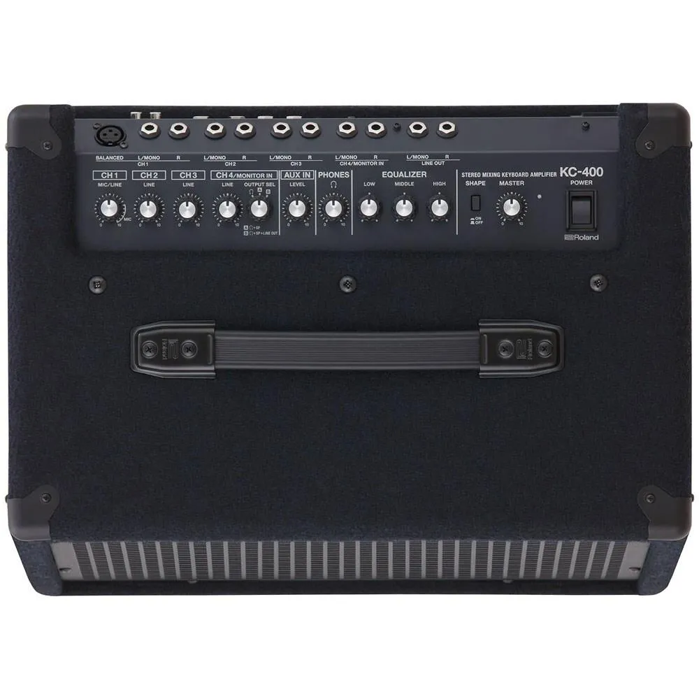 The KC-400 offers powerful, punchy sound and full-range audio reproduction in a compact amp with 150 watts of power. The cabinet features Roland’s patented twin bass-reflex design, providing extended low-frequency response without distortion. Paired with the newly redesigned power section, the KC-400 delivers even better bass performance for amplifying 88-note stage pianos, organs, and synthesizers, plus rhythm machines and other electronic instruments. An added benefit of the efficient new power section is reduced weight, making the KC-400 easier to carry from gig to gig.