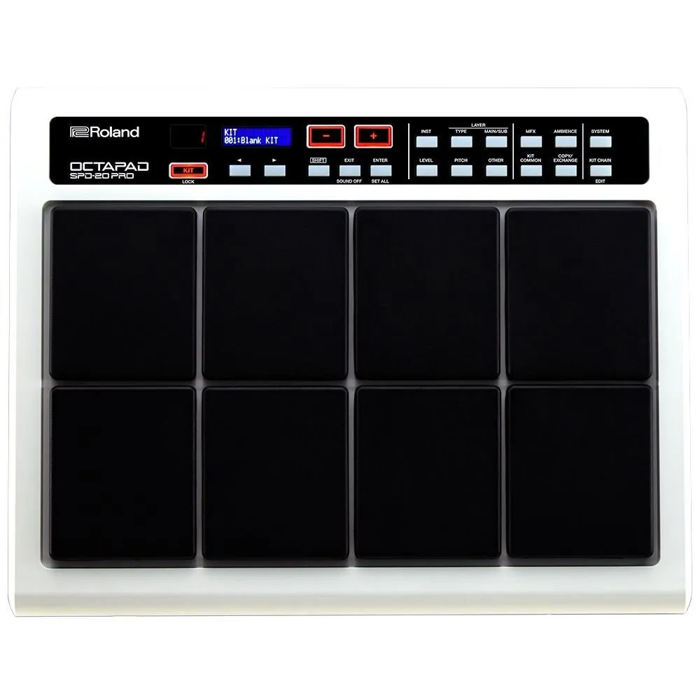 The OCTAPAD SPD-20 PRO offers the famous eight-pad layout, legendary sounds, and rugged durability of the original SPD-20, newly enhanced with more responsive playability, additional sounds and functions, and an updated user interface. Compact and portable, the OCTAPAD SPD-20 PRO delivers everything you need to authentically cover percussion in all music genres and settings, from small groups to large-scale ensembles.
