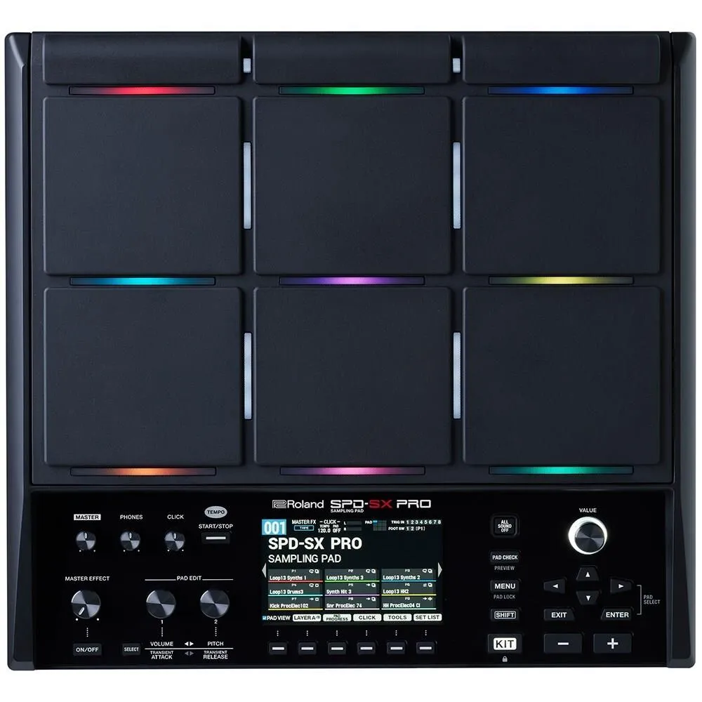 The SPD-SX PRO is the ultimate sampling pad for the most demanding gigs. With years of road testing and extensive user feedback from the SPD-S and SPD-SX, the top-tier SPD-SX PRO raises the bar again. Harnessing the advanced sample pad technology of its predecessors, the SPD-X-PRO boasts an array of requested professional enhancements and is built for life on the road. Illuminate dark stages with a large colour display and customizable multi-colour trigger lights. Expand your performance setup with more audio outputs, additional trigger inputs, and hi-hat and FX expression pedal control. And go further with a massive 32 GB memory, 48 kHz audio playback, increased pad sensitivity without crosstalk, and a dedicated SPD-SX PRO App for easier kit editing.