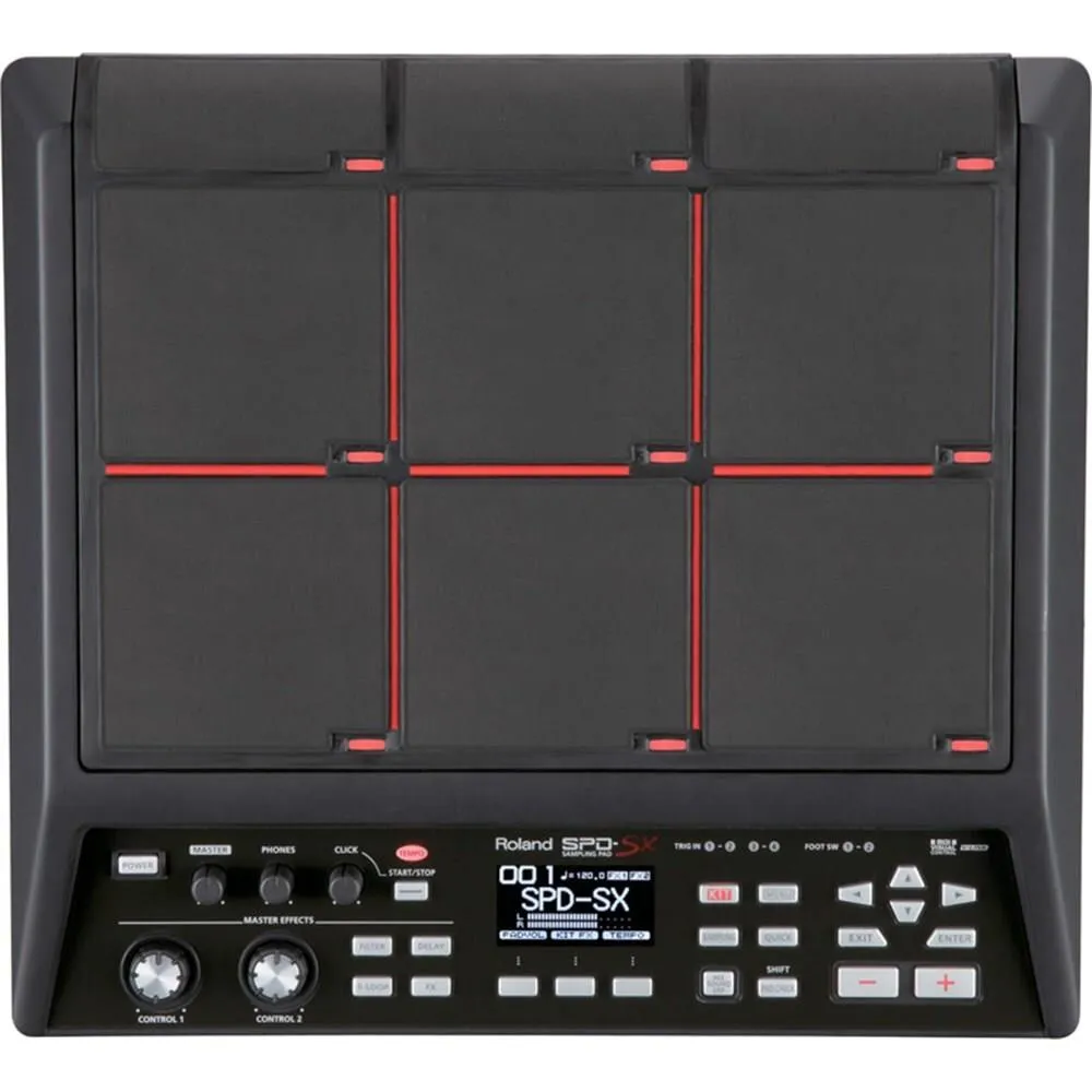 Express your creativity with the powerful playback and sample creation stemming from the Roland SPD-SX sampling pad percussive sampling instrument, featuring an ample 2GB of internal memory. This sleek instrument, boasting two external dual-trigger inputs and nine rubber pads that are sensitive to velocity, makes an ideal complement to your DJ booth, percussion setup or drum kit.