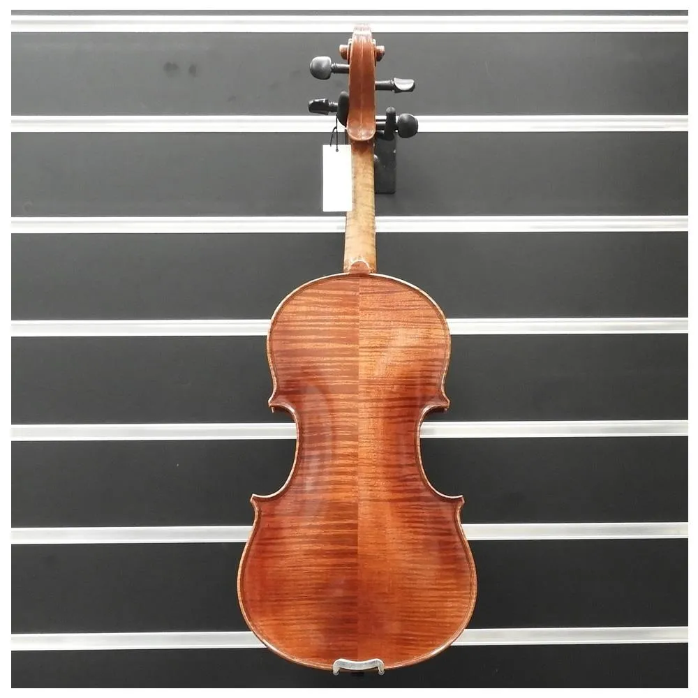 Violin has been expertly setup, and is ready to play when it arrives to you. Including an Aubert Bridge, Pirastro Violino Strings, pegs properly adjusted and fitted. We have many violins to choose from which you are welcome to come try, in our workshop.