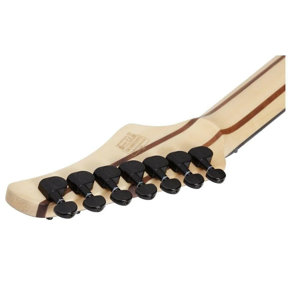 - 7-string electric guitar with sleek, sharp, and aggressive styling