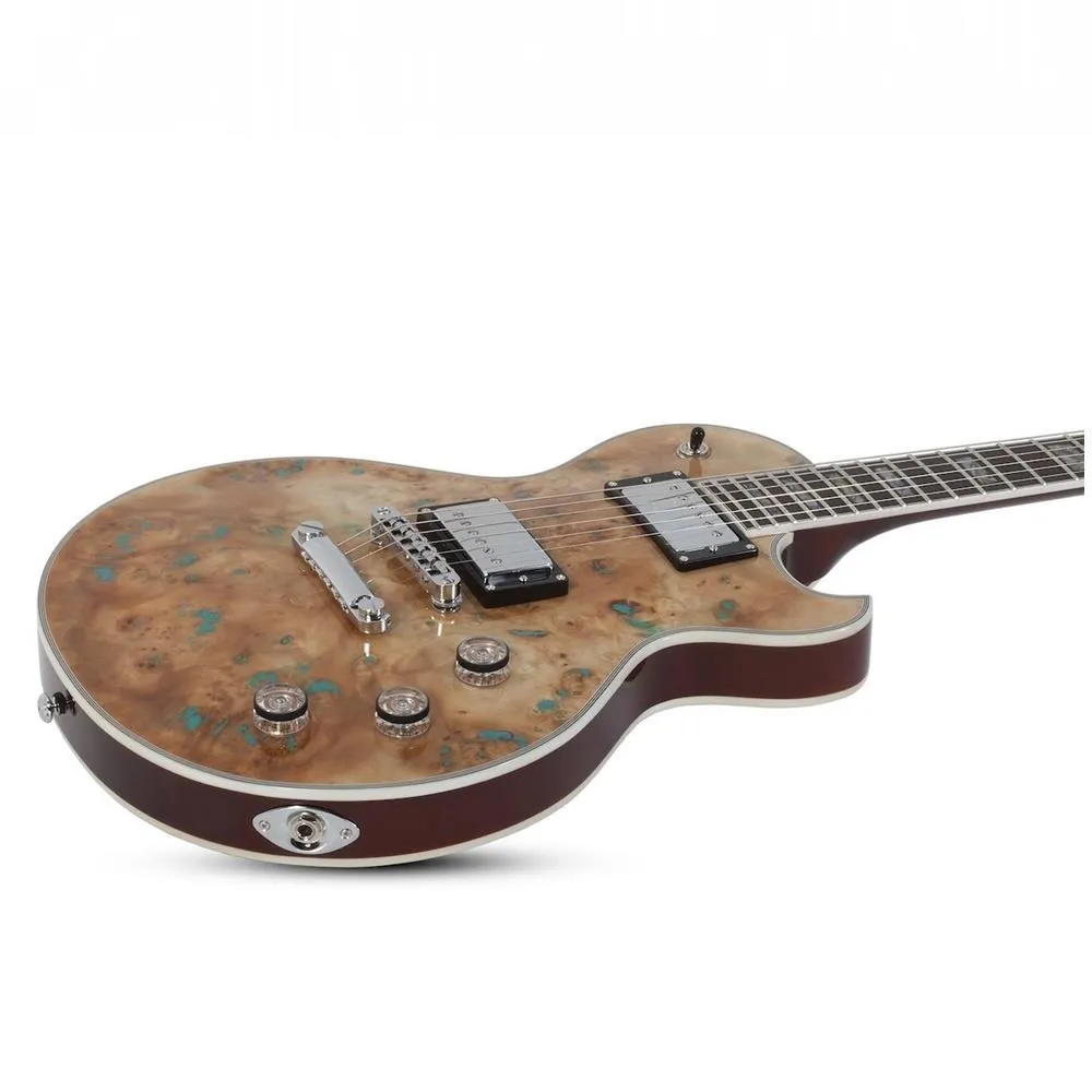 The basis of the Schecter Solo II Custom electric guitar is the mahogany body, set neck, and single-cutaway design that has found a home with countless guitarists worldwide. The tonewood combination offers a sound that has plenty of warmth and bark, and the exotic burl delivers long sustain and a quick attack. You'll notice harmonics and transients explode from the ebony fretboard. But Schecter is far from copying an old design. Thanks to the sharp cutaway, thin "C" neck profile, and Schecter headstock, the Solo II Custom still has a look and feel all of its own.