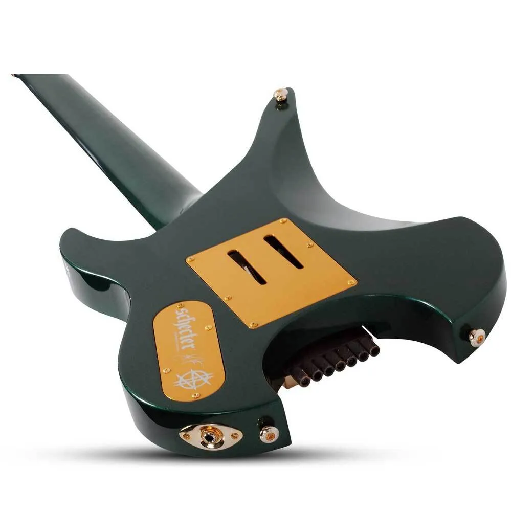 The Schecter Synyster Gates Custom 7 TR Headless Guitar in Oak Green Metallic combines cutting-edge design, premium craftsmanship, and unmatched tonal versatility. A true statement piece for modern guitarists, this 7-string masterpiece is built for technical precision and creative expression.