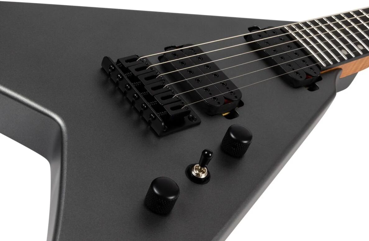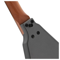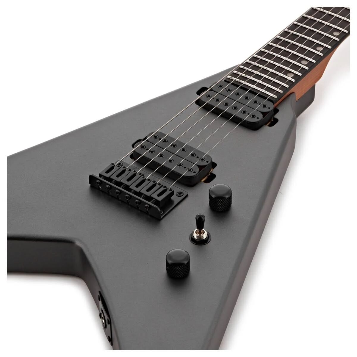 The Spira Guitars V-400 is a bold, modern reimagining of the classic V-shape, designed for speed, power, and precision. Its roasted poplar body and satin-finished Canadian roasted maple neck offer a comfortable yet rugged feel, while the Ebony Tech fretboard with 24 jumbo frets ensures fast, articulate playing. Featuring Spira’s custom high-output Villain humbuckers with ceramic magnets, the V-400 delivers punchy, aggressive tones ideal for high-gain riffing and cutting solos. A fixed bridge and locking tuners provide rock-solid tuning stability, making it equally reliable on stage or in the studio. Finished in sleek satin black hardware, it’s a visually and sonically uncompromising instrument.