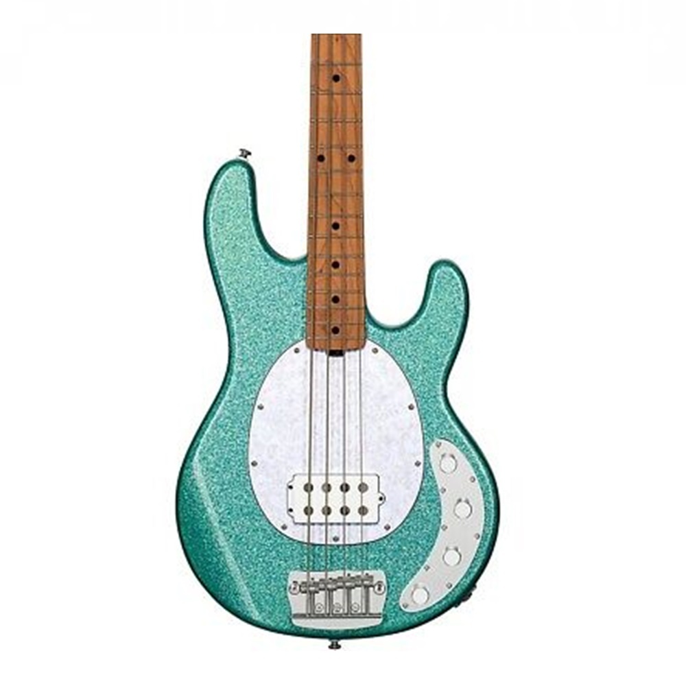 The STERLING BY MUSIC MAN Stingray Ray34 (MN, Seafoam Sparkle) solid body electric bass features a Mahogany modern contoured body, roasted Maple neck, a 3-band active preamp, and a bridge modeled after the iconic Ernie Ball Music Man StingRay.