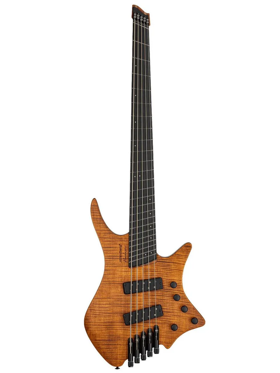 The Boden Bass Prog was designed to provide exceptional comfort, ergonomics and playability with its lightweight headless construction, multi-scale neck, and the patented EndurNeck neck profile. For the bass player, this is especially important knowing how much a solidbody bass can weigh. The proprietary hardware is constructed of aircraft grade aluminum that plays a major part in the instrument’s unique woody and organic acoustic character besides reducing the overall weight. Premium materials such as Swamp Ash for the body with solid ¼” Flame Maple top and roasted Maple for the neck and Ebony for the fretboard and proprietary components along with world class manufacturing processes and techniques are used to produce these instruments of exceptional build quality, workmanship, and reliability.