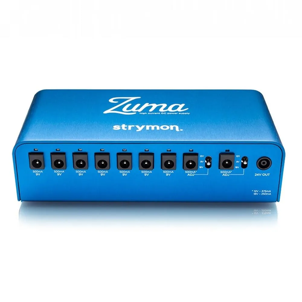 The Strymon Zuma pedalboard effects pedal power supply is prepared to deliver flawless power to even the most complicated pedalboard setups. You'll find seven 9V outputs on the front of the Zuma that pump an amazing 500mA, ensuring your most power-hungry pedals work their best. And with more and more pedals hitting the market with specialized power needs to achieve their best performance, you'll appreciate the Zuma's two additional outputs that boast same mA ratings while offering 9V, 12V, and 18V operation.